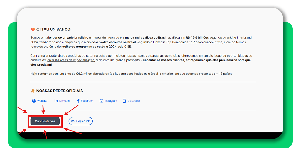 Na página específica do Itaú do portal de recrutamento, é possível verificar informações, como: