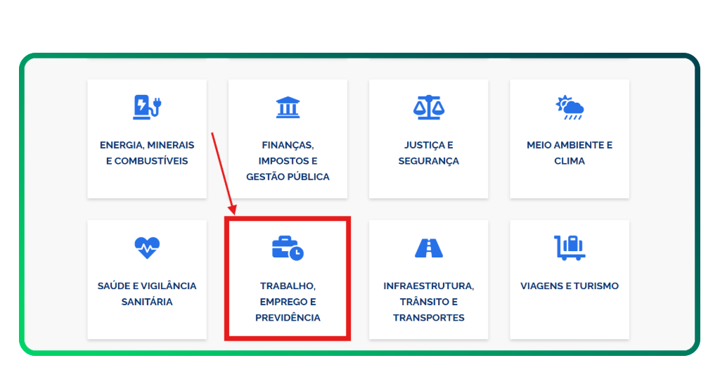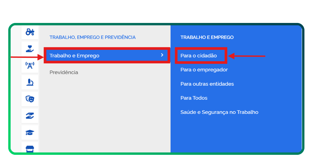 O portal governamental também proporciona serviços trabalhistas para a população, inclusive a solicitação do Seguro-Desemprego.